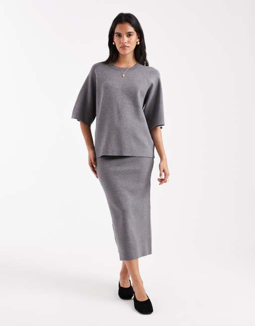 Object - Jupe mi-longue d'ensemble en maille structurée - Gris