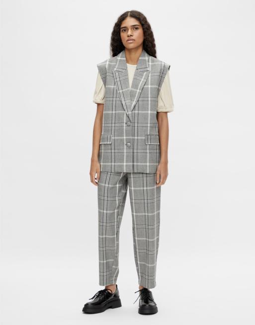 Object - Pantalon d'ensemble ajusté à carreaux - Gris