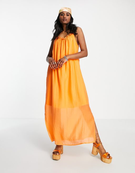 Object - Robe mi-longue à détails froncés et bretelles - Orange vif