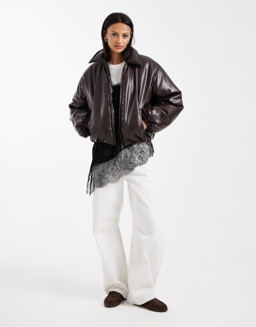 Object - Veste matelassée imitation cuir de qualité supérieure - Marron chocolat