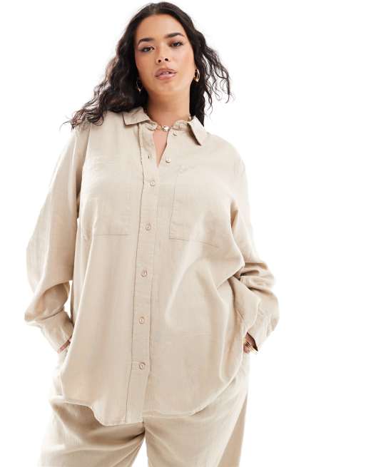 ONLY Curve - Chemise d'ensemble en lin mélangé à manches longues - Beige