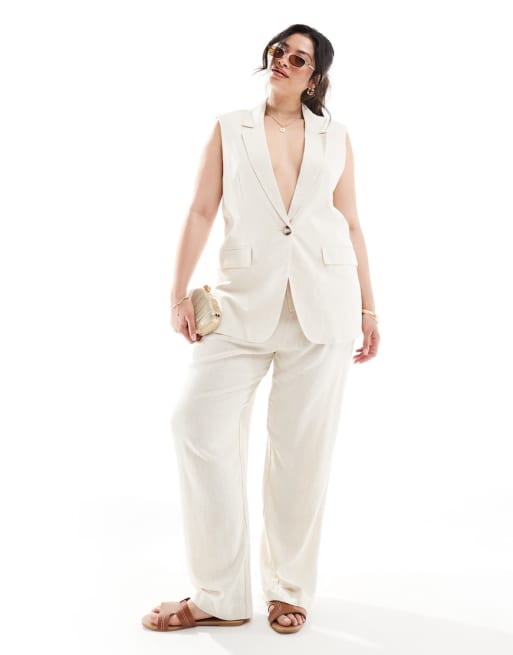 ONLY Curve - Ensemble ajusté en lin mélangé - Crème