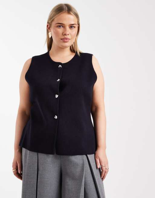 Only Curve - Gilet de tailleur fendu en maille compacte - Bleu marine