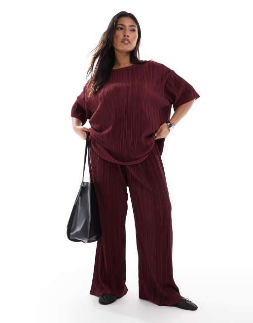 ONLY Curve - Pantalon d'ensemble plissé ample - Bordeaux
