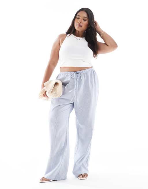 ONLY Curve - Pantalon large noué à la taille - Bleu clair rayé