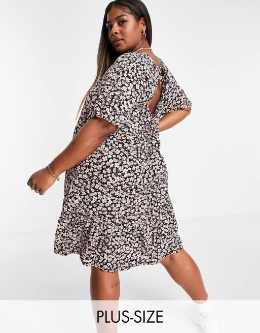 Only Curve - Robe courte coupe babydoll à dos ouvert - Noir