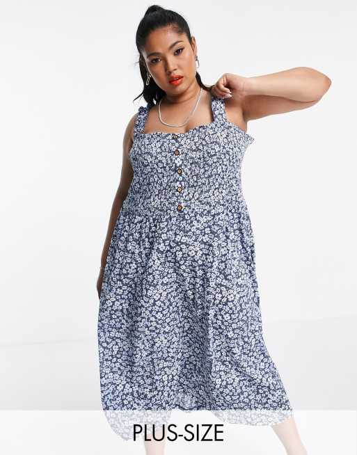 Only Curve - Robe d'été en jersey avec bretelles froncées - Bleu marine