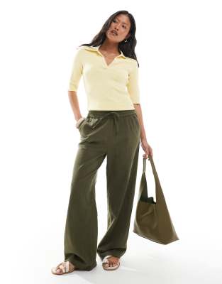 ONLY Petite - Pantalon large aspect lin - Kaki