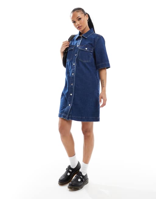 ONLY Petite - Robe en jean à manches courtes - Bleu foncé délavé