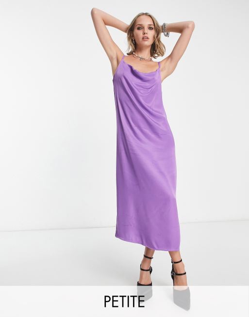Only Petite - Robe nuisette longue effet satin à col bénitier - Violet