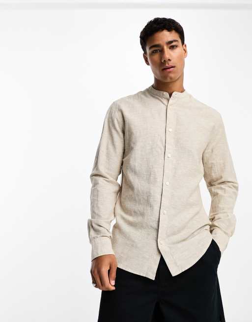 Only & Sons - Chemise à col grand-père en lin mélangé - Beige