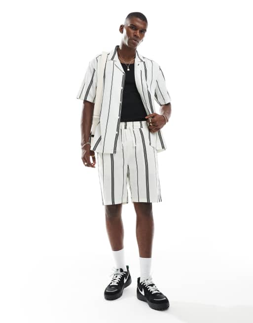 ONLY & SONS - Chemise d'ensemble rayée en lin - Noir et blanc