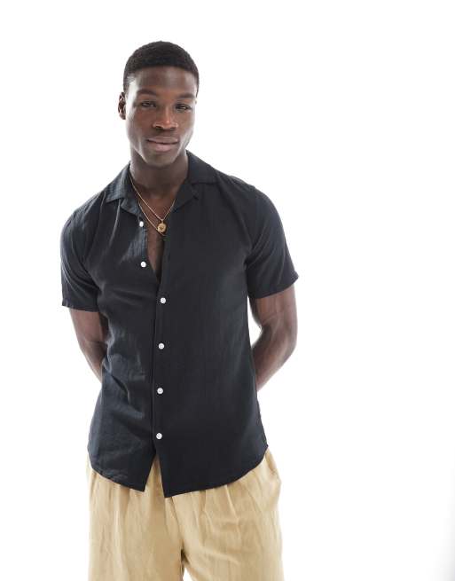 Only & Sons - Chemise en lin mélangé avec col à revers - Noir