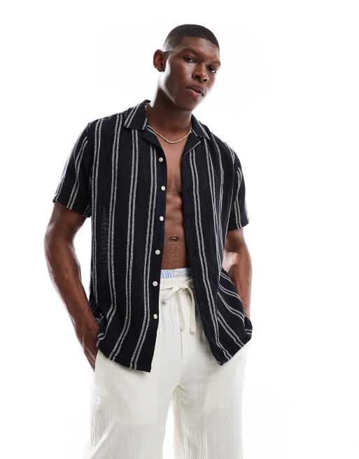 ONLY & SONS - Chemise texturée à rayures avec col à revers - Bleu marine