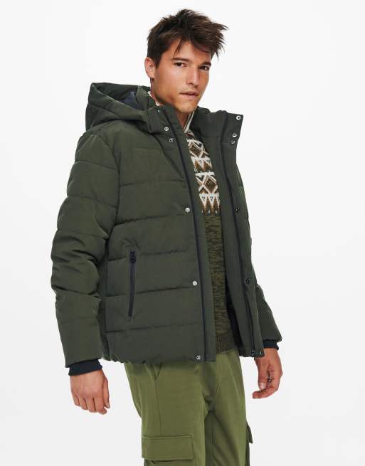 Only & Sons - Doudoune imperméable à capuche - Kaki