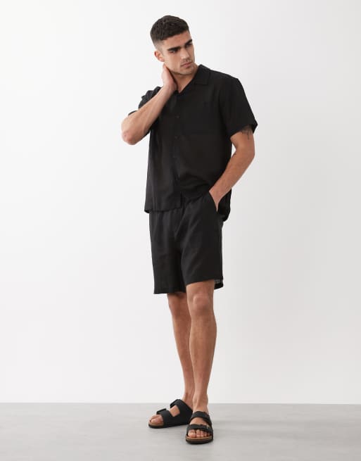 ONLY & SONS - Ensemble chemise décontractée et short en lin majoritaire - Noir