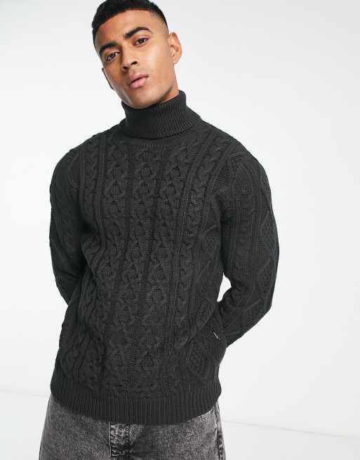 Only & Sons - Pull col roulé en maille épaisse torsadée - Gris