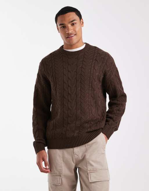 ONLY & SONS - Pull décontracté en maille torsadée - Marron foncé
