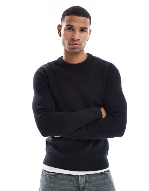Only & Sons - Pull ras de cou en maille côtelée de première qualité - Bleu marine
