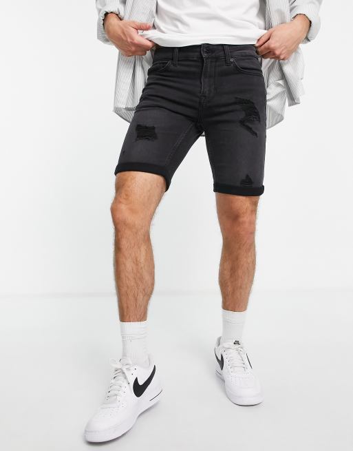 Only & Sons - Short en jean slim avec déchirures - Noir