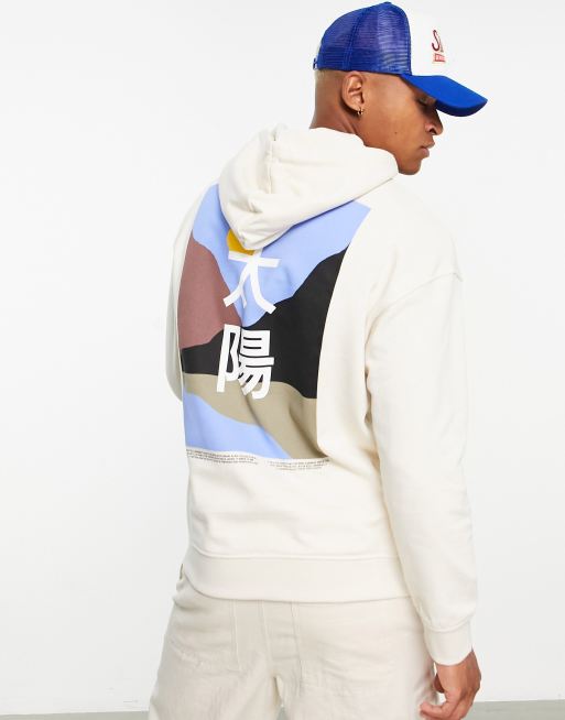 Only & Sons - Sweat à capuche oversize avec imprimé coucher de soleil japonais au dos - Blanc