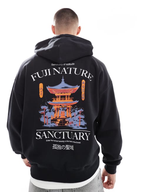 ONLY & SONS - Sweat à capuche oversize avec imprimé Sanctuary au dos - Noir
