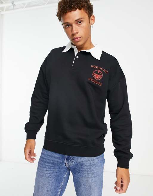 Only & Sons - Sweat de rugby oversize avec imprimé sur la poitrine - Noir