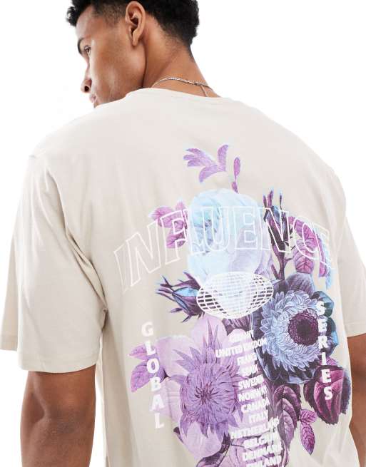 Only & Sons - T-shirt décontracté avec imprimé fleurs au dos - Beige
