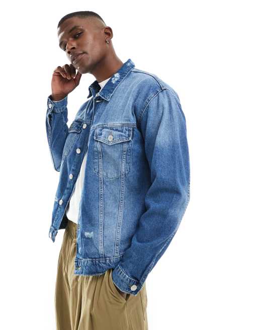 ONLY & SONS - Veste en jean effet usé - Bleu moyen délavé