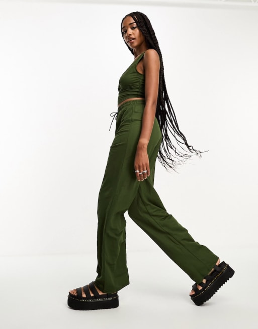 Only Tall - Ensemble avec pantalon droit et crop top - Kaki