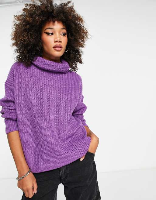 Exclusivité - Only - Pull long à col roulé - Violet vif