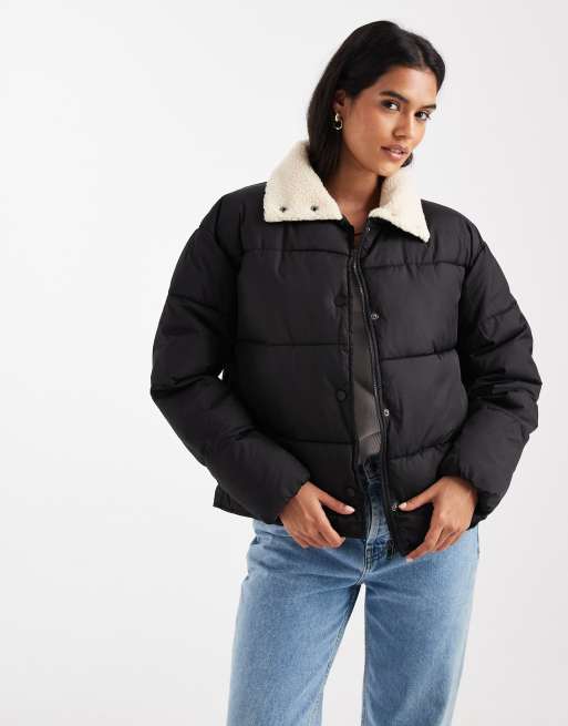 ONLY - Doudoune à col imitation peau de mouton - Noir