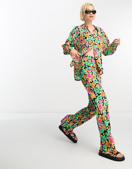 Only - Ensemble chemise oversize et pantalon évasé à imprimé fleuri - Multicolore