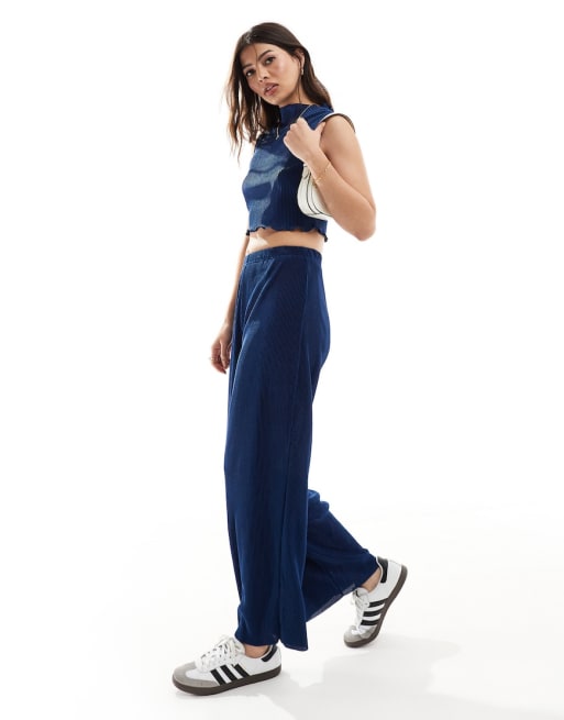 Only - Ensemble pantalon et crop top plissés - Bleu marine