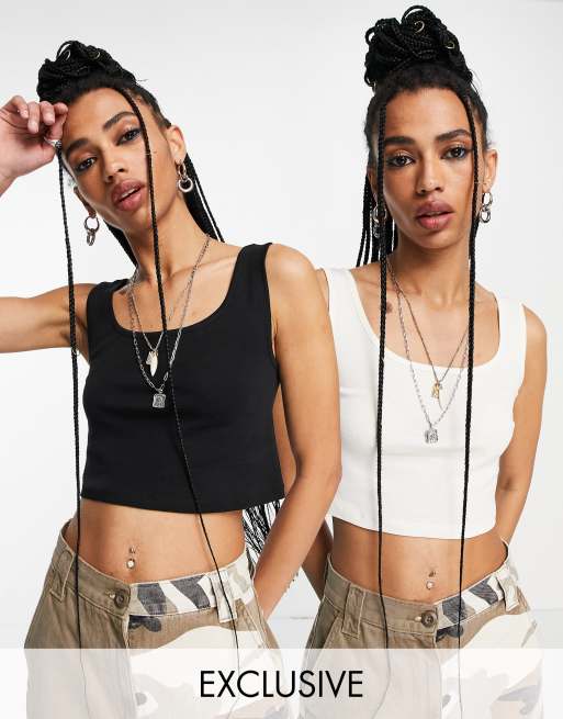 Only - Exclusivité - Lot de 2 crop tops à encolure dégagée - Noir et blanc