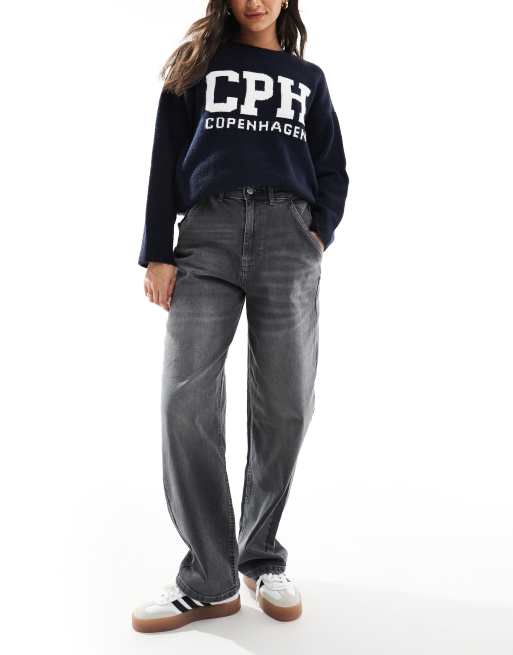 ONLY - Gia - Jean baggy ample à taille mi-haute - Gris