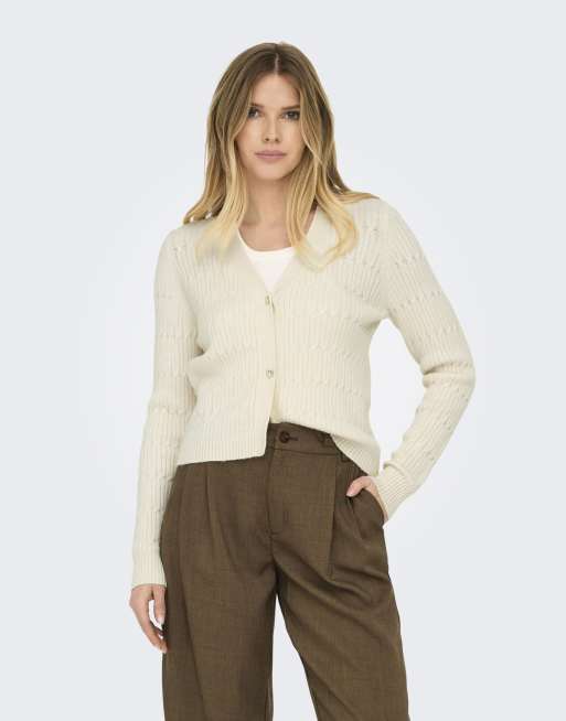 ONLY - Gilet en maille à col en V - Crème
