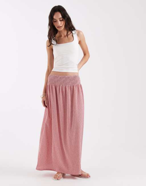 ONLY - Jupe longue à carreaux vichy - Rouge
