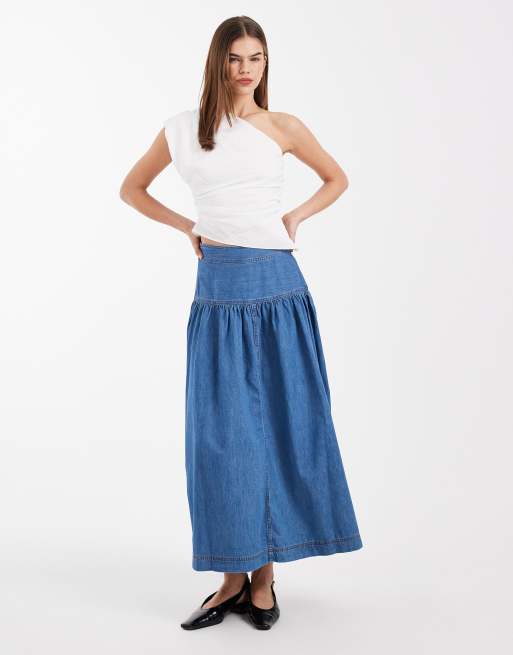 ONLY - Jupe longue en jean à taille basse - Bleu moyen