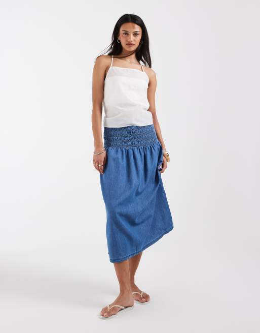 Only - Jupe mi-longue plissée en chambray - Bleu moyen