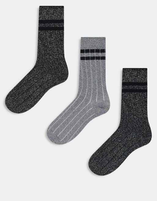 ONLY - Lot de 3 paires de chaussettes - Gris foncé et argenté