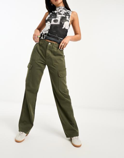 Only - Pantalon cargo droit - Kaki