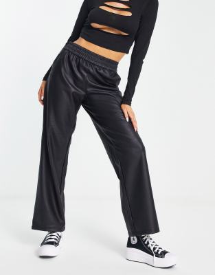 Only - Pantalon droit en similicuir à taille élastique - Noir