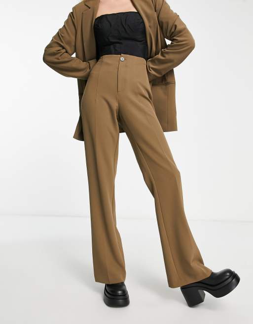 Only - Pantalon évasé ajusté - Marron moka