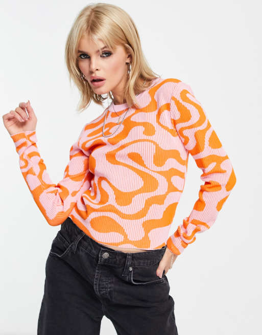 Only - Pull en maille côtelée imprimé volutes - Rose et orange