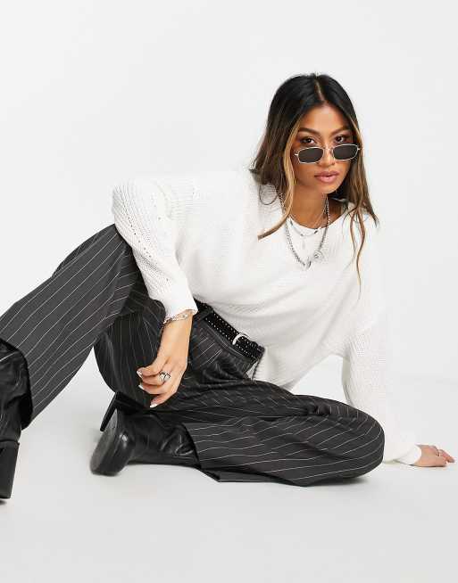 Only - Pull oversize à détail en maille pointelle - Blanc