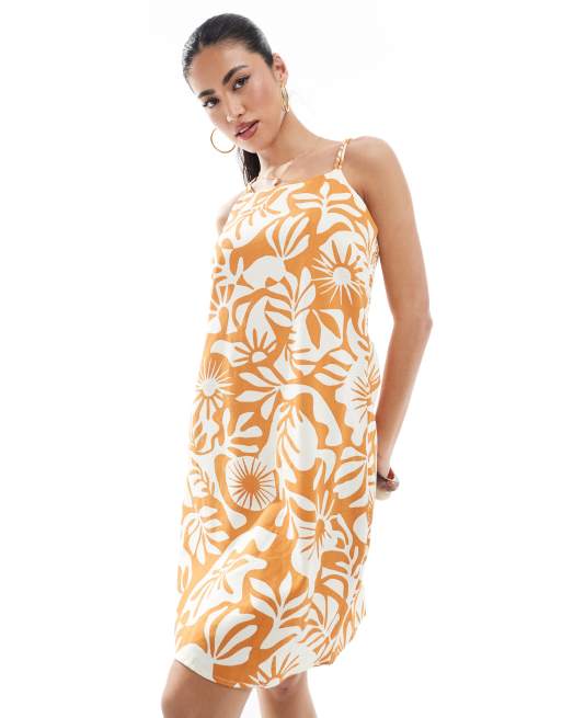 ONLY - Robe courte en lin mélangé à imprimé soleils - Orange