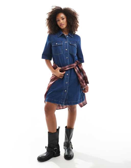 ONLY - Robe en jean à manches courtes - Bleu foncé délavé