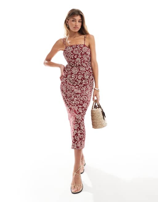 ONLY - Robe mi-longue à imprimé cachemire avec détail noué au dos - Bordeaux