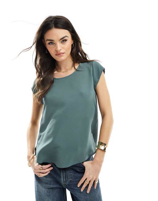 ONLY - Top à manches courtes zippé au dos - Vert